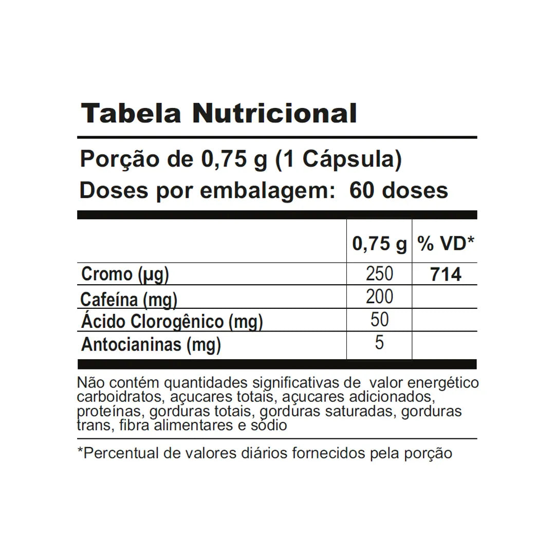 Ingerir 1 cápsula (0,75 g), preferencialmente 30 minutos antes da refeição e/ou atividade física. Não recomendado tomar antes de dormir.